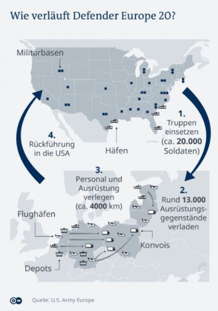 20,000 trupa amerikane dhe 13,000 copë pajisje do të arrijnë në Francë, Belgjikë, Hollandë dhe Gjermani. Nga atje, autokolonat do të kalojnë rreth 4,000 kilometra nëpër 12 rrugë. Një total prej 37,000 ushtarësh nga 19 vende dhe rreth 20,000 pajisje marrin pjesë në stërvitje. Ushtrimi do të zgjasë për pesë muaj.