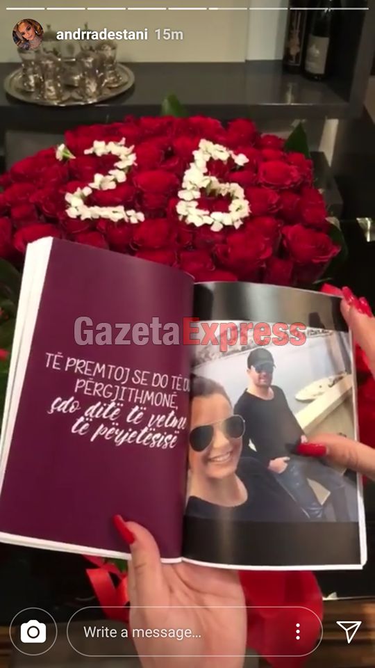 Përveç një tufe trëndafilash ai i ka dhuruar një libërth me fotot e tyre më të bukura si dhe ka renditur 50 arsyet se përse është i dashuruar me të. Një gjest mjaft romantik ky i këngëtarit të njohur për gjysmën e tij më të mirë./Gazeta Express