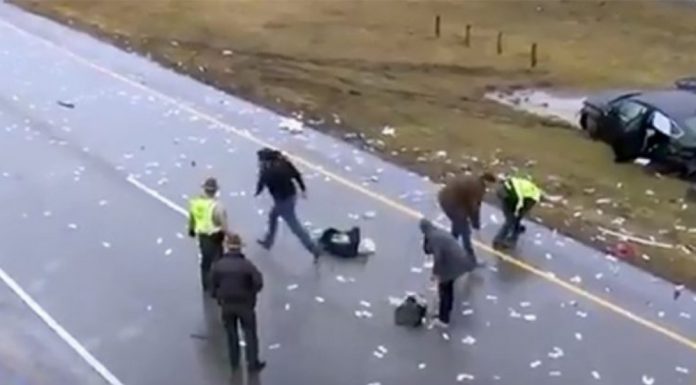 Ende nuk është bërë zyrtare sasia e parave që ranë në rrugë, por policia vlerësoi paraprakisht se bëhet fjalë për 600 mijë dollarë.