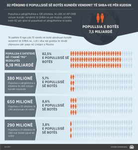 Popullsia e përgjithshme e 128 shteteve, të cilët në votimin e Asamblesë së Përgjithshme të Kombeve të Bashkuara (AP-OKB) kundërshtuan vendimin e presidentit të SHBA-ve, Donald Trump për njohjen e Kudsit si kryeqytet të Izraelit, përbën rreth 82 për qind të popullsisë së botës, raporton Anadolu Agency (AA).
