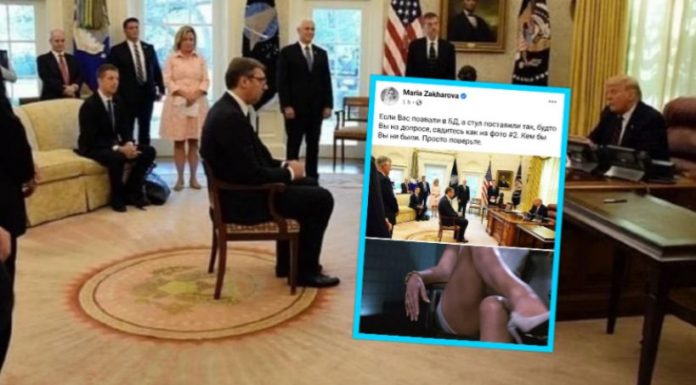 Zëdhënësja e Ministrisë së Jashtme të Rusisë e ka krahasuar takimin e Vucic me Trump me skenën aspak të përshtatshme nga filmi “Basic Instinct”, çka ka ngjallur jo pak reagime nga serbet.