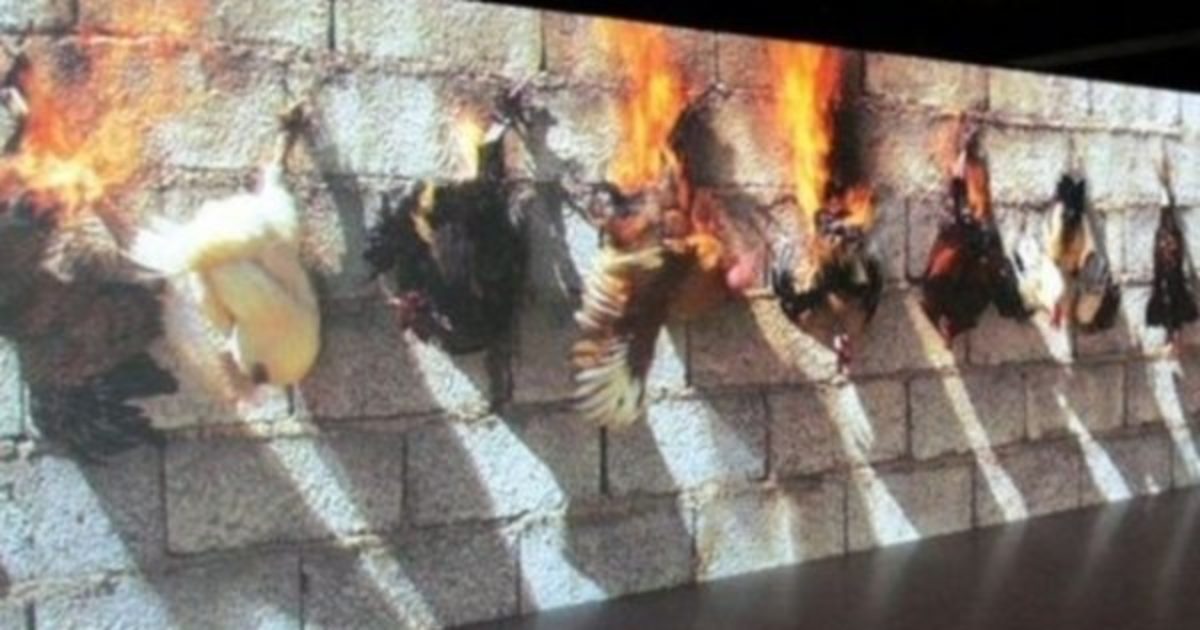 Në Lyon, Muzeu i Artit Bashkëkohor shfaqi një video shumë të rëndë të disa pulave të cilat djegen për se gjalli. Kjo ekspozitë shkaktoi zemërimin e grupeve të të drejtave të kafshëve. Artisti mbron qasjen e tij.