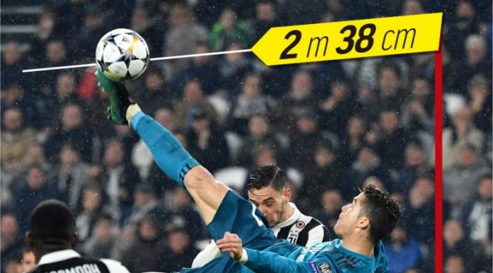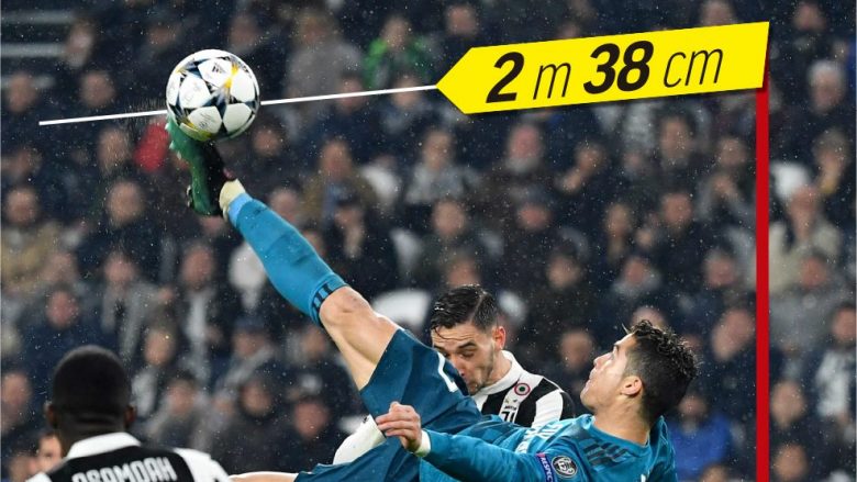 Por tifozët e futbollit duhet ta dinë një gjë. Këmba e Ronaldos në momentin që e goditi topin shkoi në dy metra e 38 centimetra.