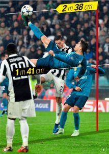 Për më tepër, matjet e MARCA-s tregojnë se Ronaldo u hodh nga toka plot një metër e 41 centimetra.