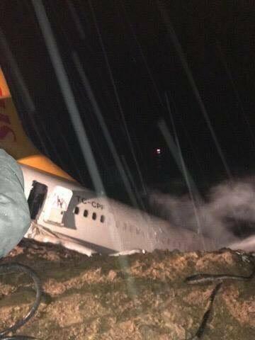 Avioni u nis nga Ankaraja në orën 22.00 dhe pas fluturimit të zakonshëm ka bërë përgatitjen për t`u ulur në aeroportin e qytetit të Trabzonit, por për aryse ende të paqarta ka dalë nga pista duke u ngulur në tokë, shkruan Albeu.com.