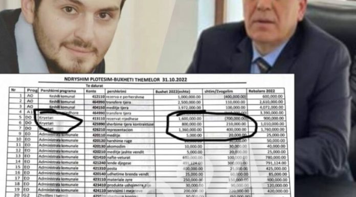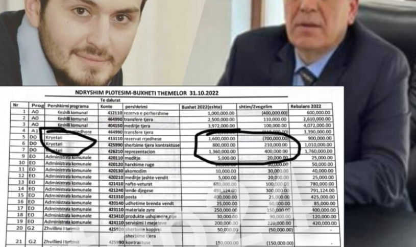 “Kryetari nuk ndalet, 1,760,000.00 Den reprezentacione (Dreka, Darka e te ngjajshme) per 1 vit. (afro 3,000.00€ ne muaj llogaritur pushimet)”