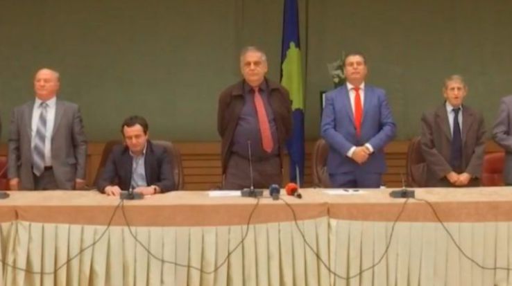 Për dallim nga bashkë-partiakët e tij, Adem Mikullovci dhe Hydajet Hyseni, si dhe aleati Agim Bahtiri, të cilët janë ngritur në këmbë duke respektuar intonimin e himnit shtetëror, Kurti duket se ka zgjedhur ‘formën e veçantë’ të tij.