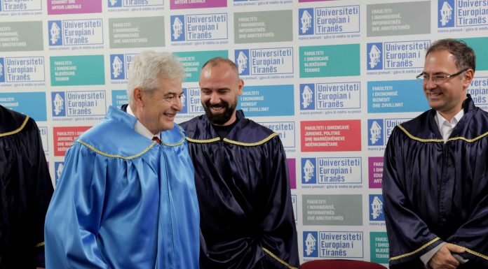 Lideri i BDI-së, Ali Ahmeti, është nderuar sot me titullin akademik “Doctor Honoris Causa” nga Universiteti Europian i Tiranës.
