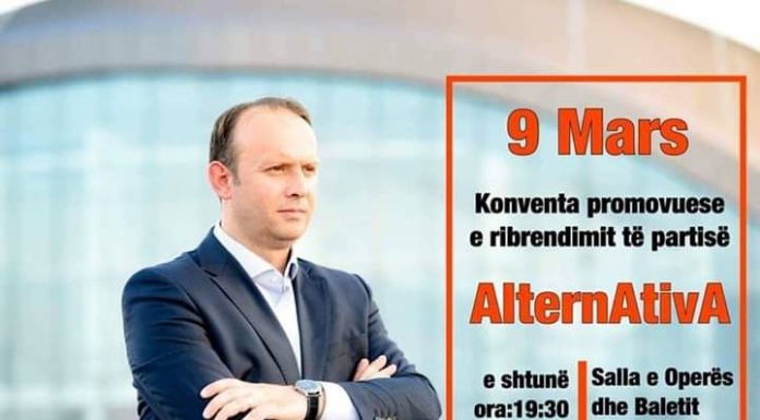 Sonte me fillim në orën 19.30, në ambientet e sallës “Opera dhe Baleti” në Shkup partia “ALTERNATIVA” do ta realizojë konventën e saj promovuese me emrin e ri dhe logon e re.