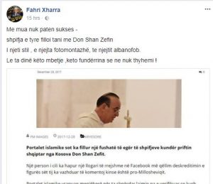 Ai në profilin e tij në facebook, u munduar ta arsyetojë e gjoja ta mohojë atë që prifti e ka thënë.
