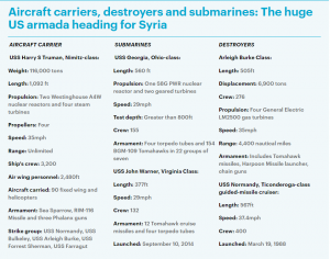 Dymbëdhjetë luftanije gjigante amerikane janë duke lundruar drejt Sirisë.