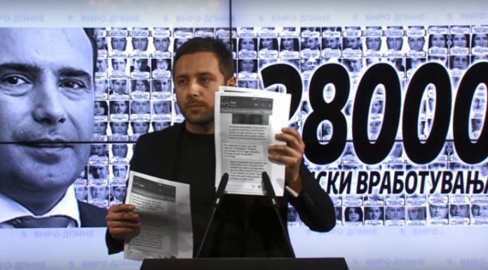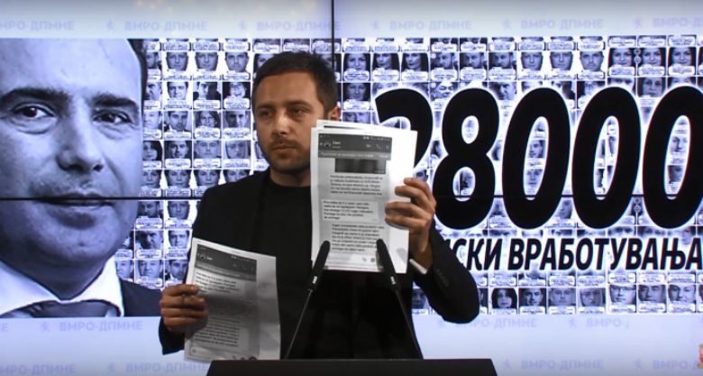 Zëdhënësi i VMRO-DPMNE-së, Dimçe Arsovski ka akuzuar sot se punësimet partiake dhe nepotizmi rrjedhin direkt nga kryeministri Zoran Zaev. Ai ka prezantuar mesazhe telefonike, ku sipas tij, kryeministri konfirmon se janë punësuar mbi 28 mijë anëtarë partiak.
