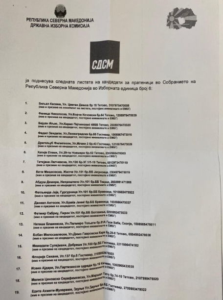 Lëvizja BESA, listën e kandidatëve për deputetë të zonës numër gjashtë dërguar në Komisionin Shtetërorë Zgjedhorë e ka dorëzuar vetëm në gjuhën maqedonase.