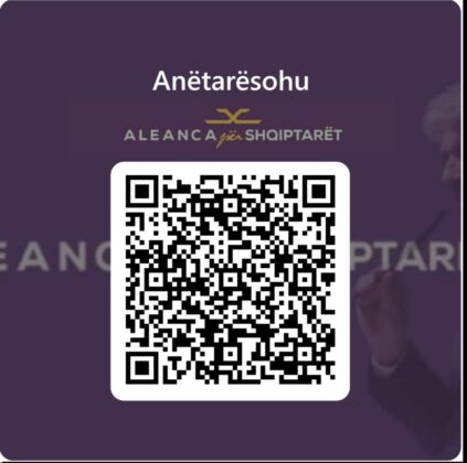 Bëhuni pjesë e familjes së madhe të Aleancës për Shqiptarët, duke plotësuar formularin për anëtarësim në linkun e mësipërm ose duke skanuar QR Kodin në foton e më poshtme. Ju faleminderit, Na priftë e mbara!” – Aleanca për Shqiptarët – Ziadin Sela, Kryetar.