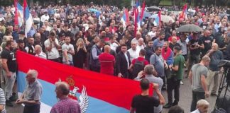 Serbët me flamuj rusë protestojnë në Podgoricë kundër rezolutës për gjenocidin...