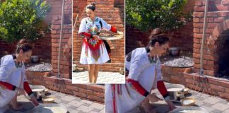 Xhuli Nura merr vëmendje me veshje tradicionale shqiptare duke bërë fli