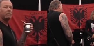 Metallica shihen duke bërë prova me flamurin e Shqipërisë të vendosur...
