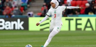 Historike, futbollistja e Marokut zbret në fushë e veshur me hixhad