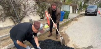 Arnold Schwarzenegger filmohet duke mbushur gropat e rrugës të lagjes së...