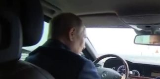 Putin “sfidon” Ukrainën, vozit Mercedesin në urën e Krimesë (VIDEO)