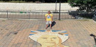Mozaik me drithëra nga shqiptari në nder të Mbretëreshës Elizabeth II,...