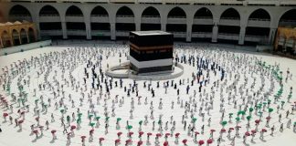 Pamje nga dita e parë e Haxhit, pelegrinët respektojnë distancën sociale...