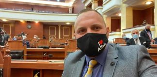 Shqipëri, deputeti në seancë parlamentare mban maskën me mbishkrimin “I Love...