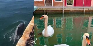 Pas bllokimit të barkave, kanalet e Venecias mbushen me peshq, delfinë...