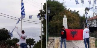 Shqiptarët në Greqi ulin flamurin grek dhe ngrenë atë shqiptar (FOTO)
