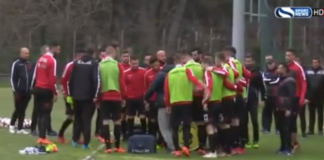 Përlotin futbollistët e kombëtares me gjestin prekës në stërvitje