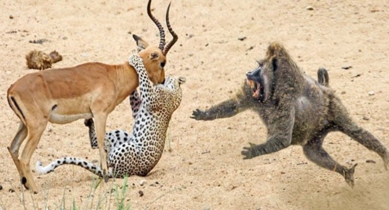Shikoni se si majmuni shpëton drerin nga gatopardi (VIDEO)