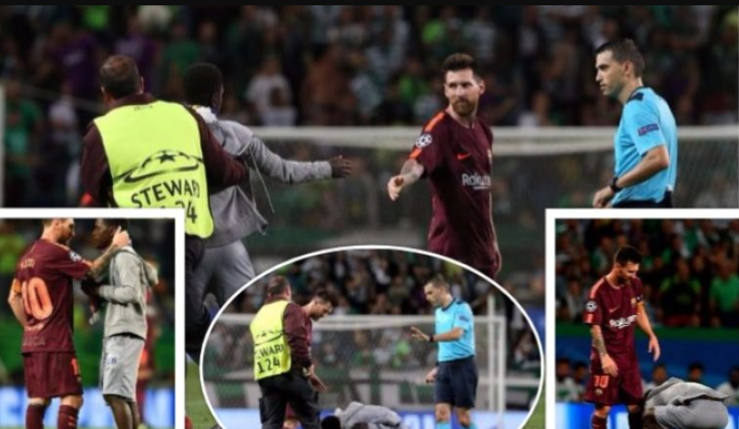 Tifozi futet në fushë dhe i puth këmbët Messit, ja si...