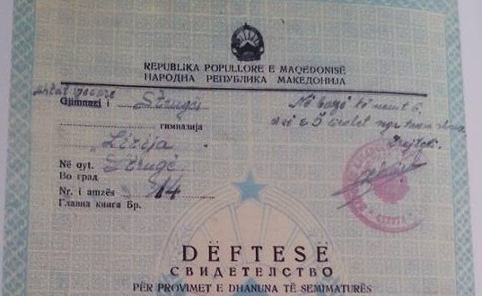 Në vitin 1947, dëftesat në shkollat e Shkupit gjuhë të parë...