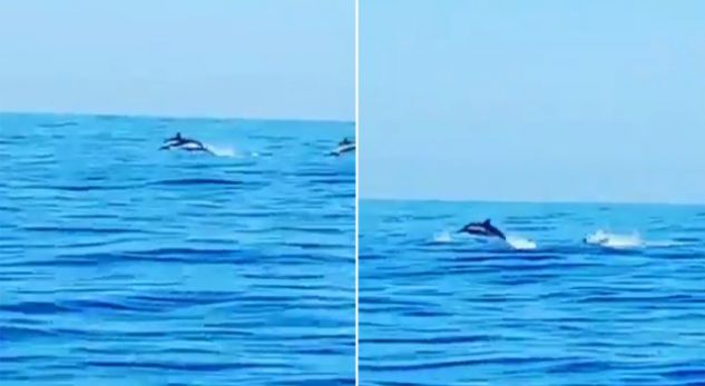 Pamje të mrekullueshme, delfinët ‘pushtojnë’ Jalën (VIDEO)