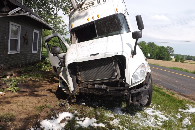 Momenti kur kamioni i shtyrë nga era zë poshtë një makinë...