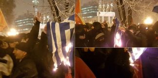 Maqedonasit djegin flamurin e Greqisë në mes të Shkupit (FOTO)