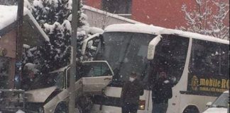 Aksident i rëndë në Pejë, autobusi godet një veturë (FOTO)