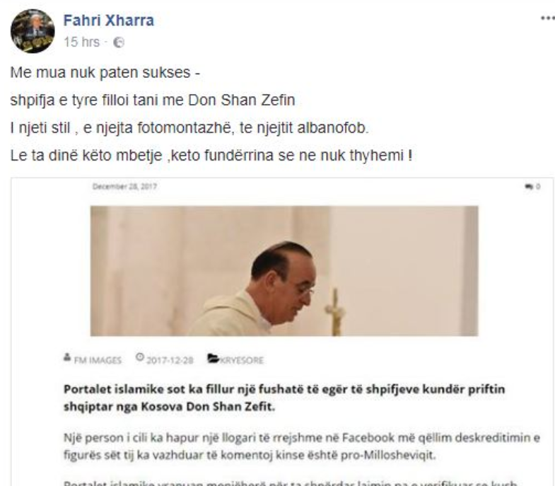 Antishqiptari Fahri Xharra i Del Në Mbrojtje Priftit “Shan Zefi” (FOTO-VIDEO)