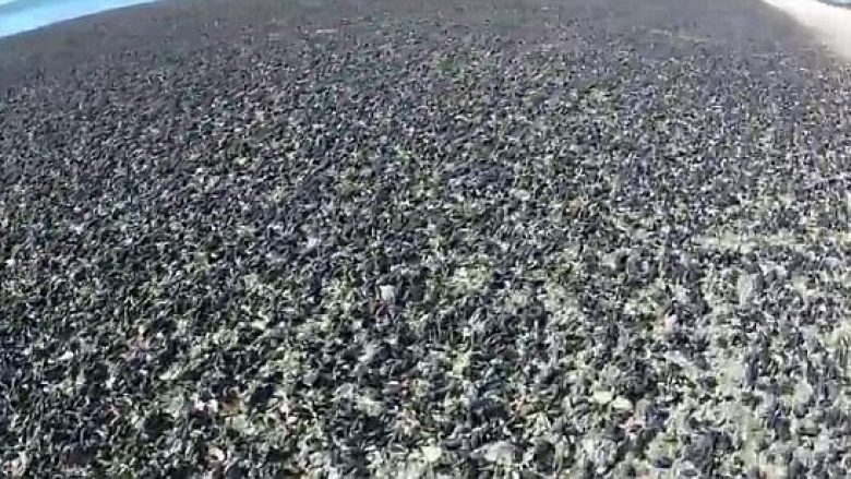 Plazhi mbushet papritmas me miliona kërmij deti (VIDEO)