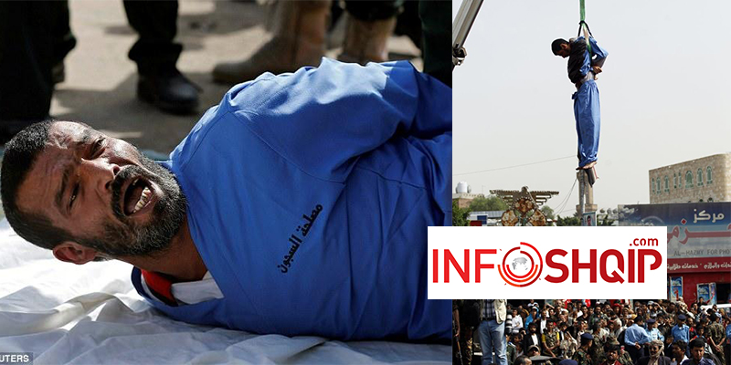 Pamje të rënda, pedofili ekzekutohet dhe varet në një vinç (FOTO-LAJM)