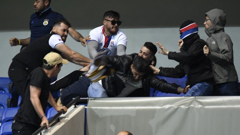 Pamje të frikshme të përleshjes së tifozëve të Lyonit dhe Besiktasit...