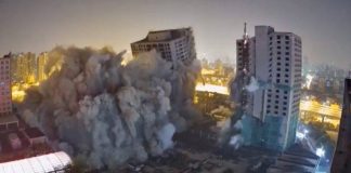 Shihni si fundosen njëkohësisht katër pallate duke shkaktuar edhe tërmet (VIDEO)