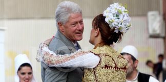 Shqiptarët i dhurojnë çiftit Clinton veshje nacionale për ditëlindjen e ish-presidentit...