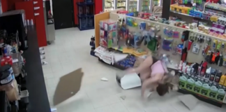 Vajza bie nga tavani i marketit duke u fshehur nga policia...
