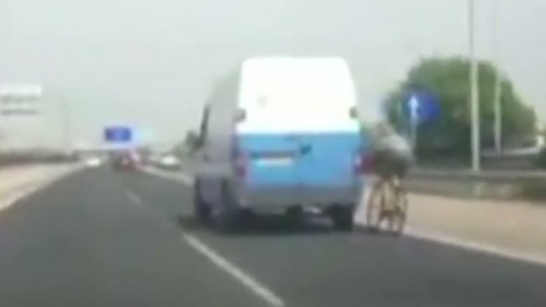 Çiklisti rrezikon jetën me 90 kilometra në orë në autostradë (VIDEO)
