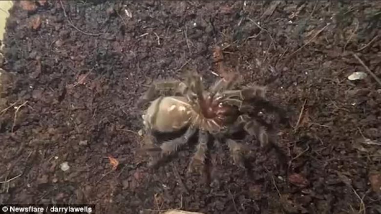Merimanga e frikshme në momentin e largimit të lëkurës së vjetër...