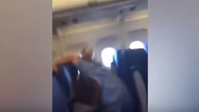 Burri i mbuluar në gjak terrorizon pasagjerët në aeroplan (VIDEO, +16)