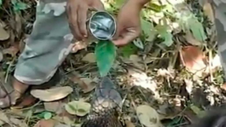 Burri rrezikon jetën për ta shpëtuar kobrën vdekjeprurëse nga dehidrimi (VIDEO)