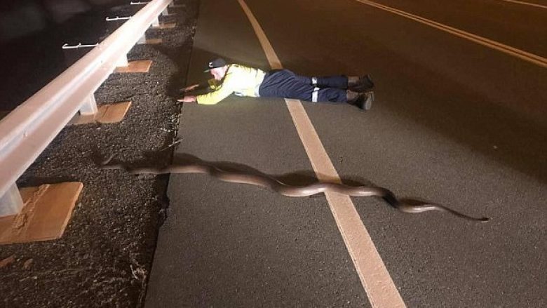 Bëhet shok me gjarprin duke e ndihmuar të kalojë rrugën (FOTO)