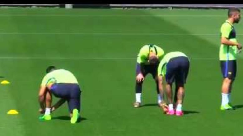 Neymar imiton Griezmannin, Messi dhe Suarez nuk mbajnë të qeshurat (VIDEO)